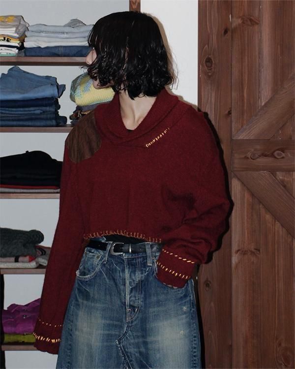 Sheeps Remake / embroidery cropped knit top(Burgundy)