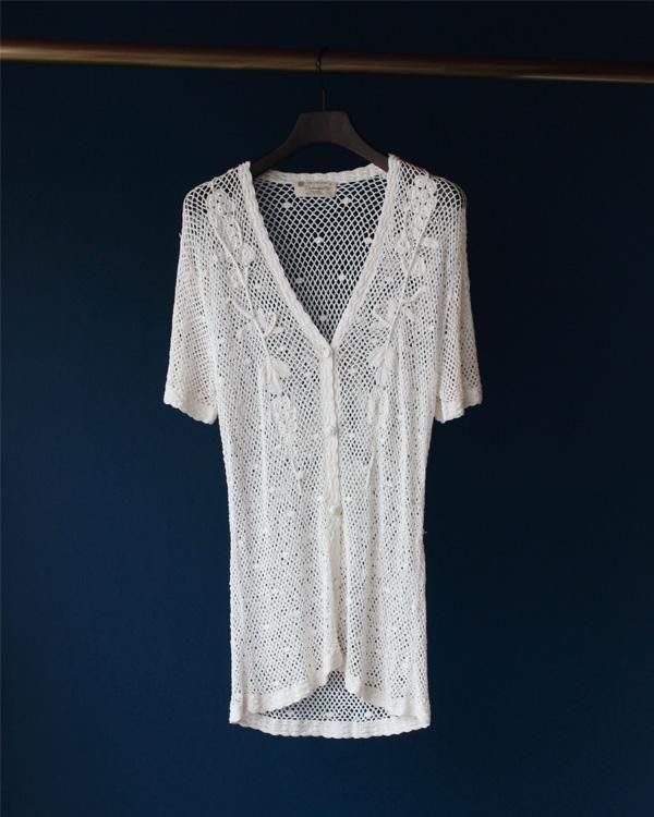 透かし編みのカーディガン。