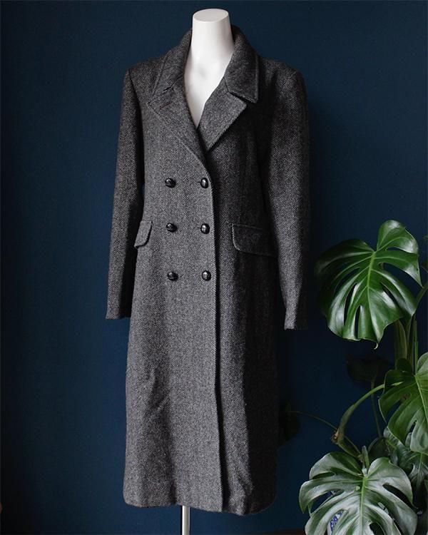 ピュアウールのUSA製ツイードのコート。両サイドのポケットは飾りです。