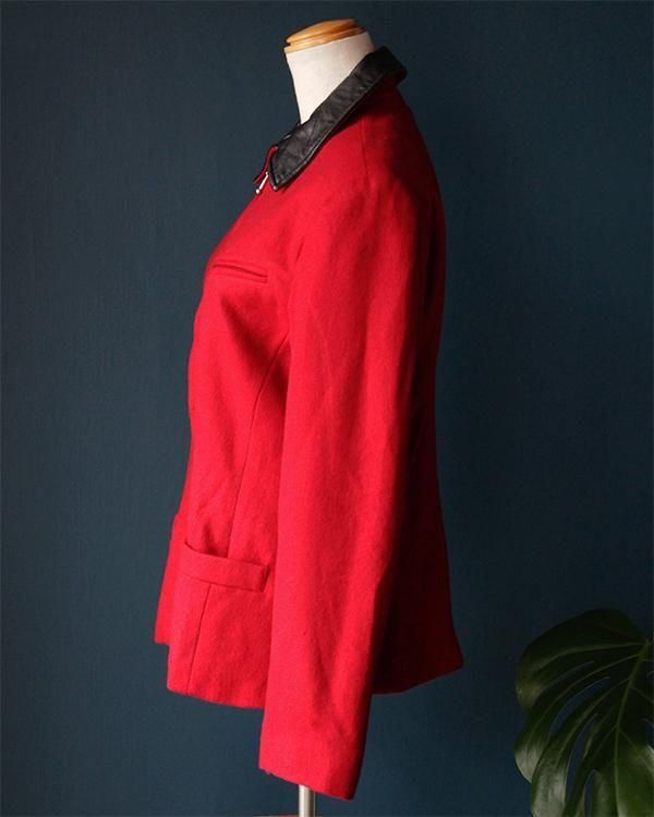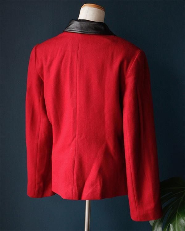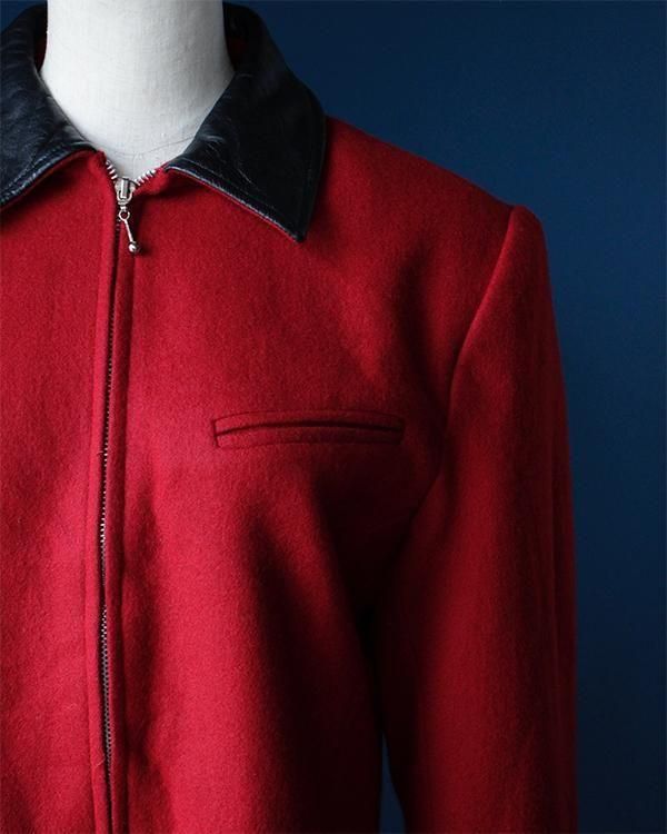 Leather collar wool jacket(made in USA)