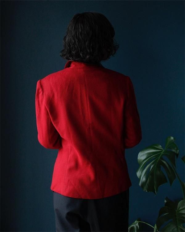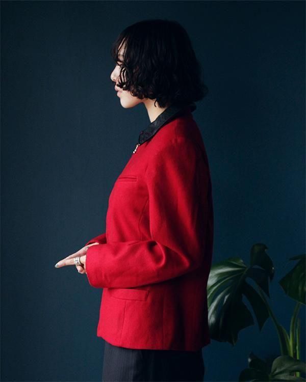 フロントジップアップデザイン。素材は少し厚みのある生地でウール100%です。