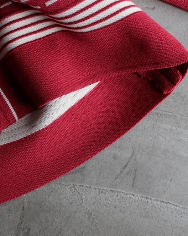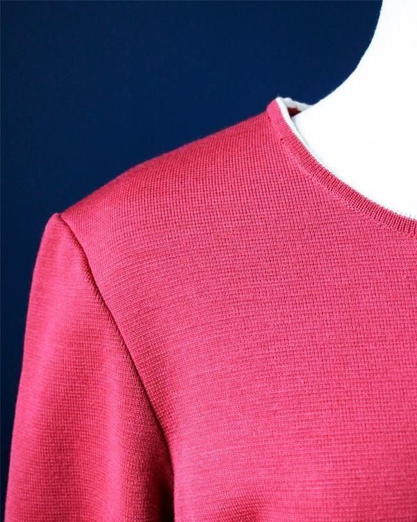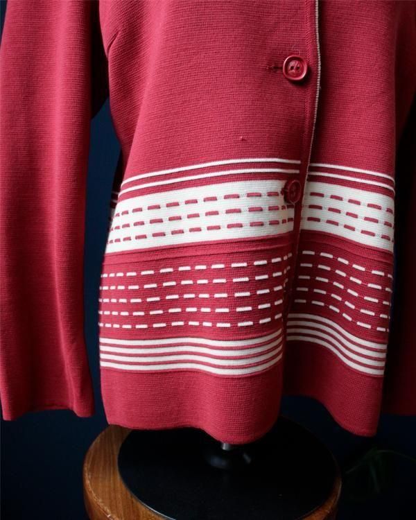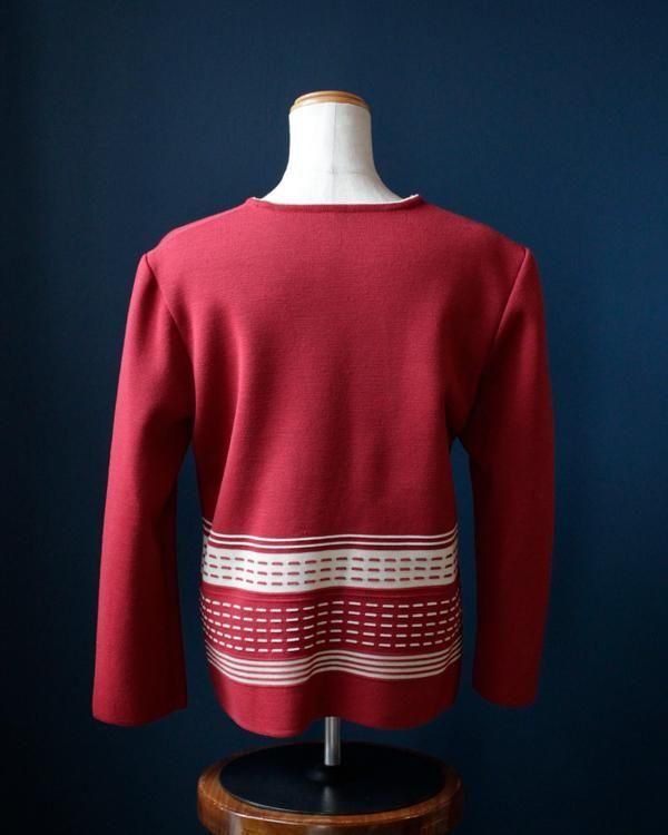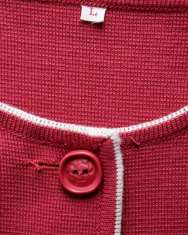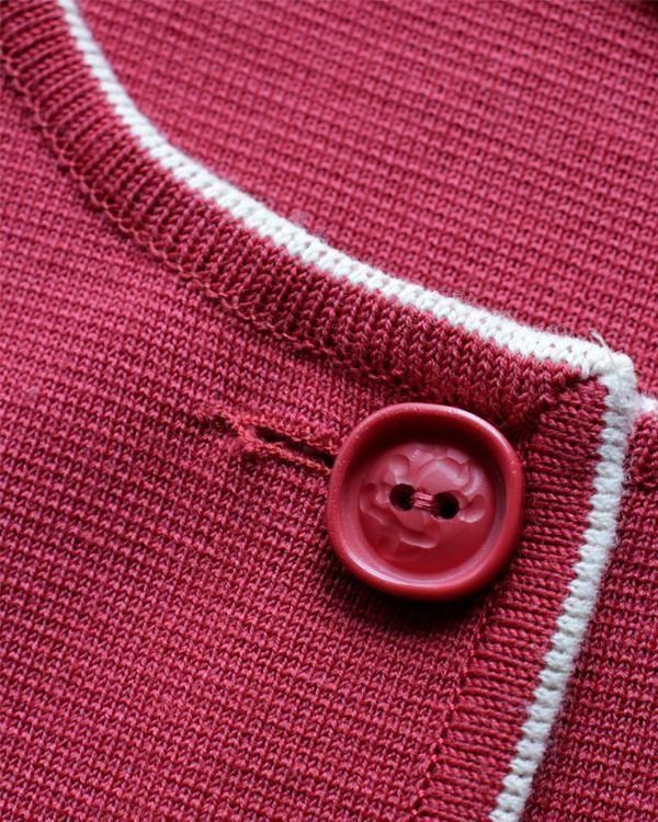 滑らかなニット素材のノーカラージャケット。フォーマルな場でも着用可能な主張しすぎないレトロジャケット。薄手のニット素材です。