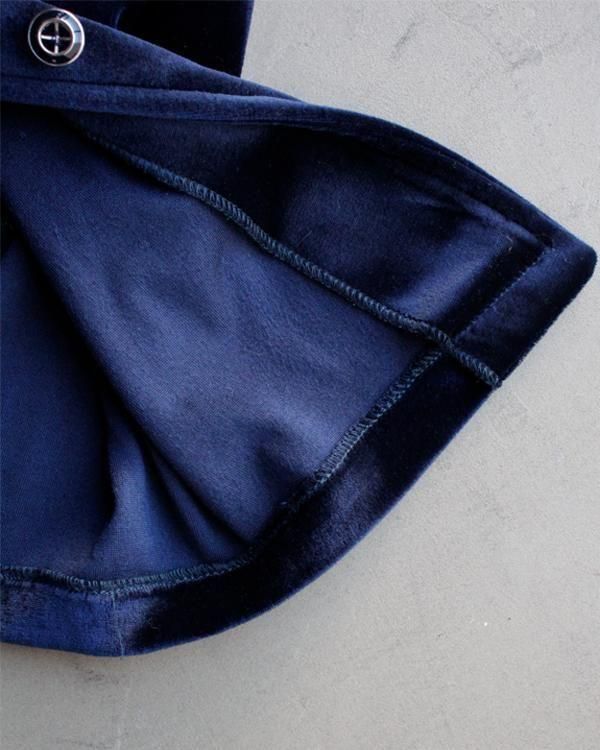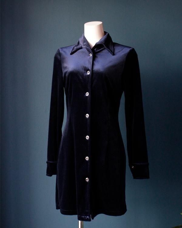 イタリア製、ベロア生地のミニ丈シャツワンピース。4センチくらい伸びるストレッチ性のあるベロアなので、柔らかく、気持ちの良い生地感です。カラータイツ、ロングブーツと合わせても◎