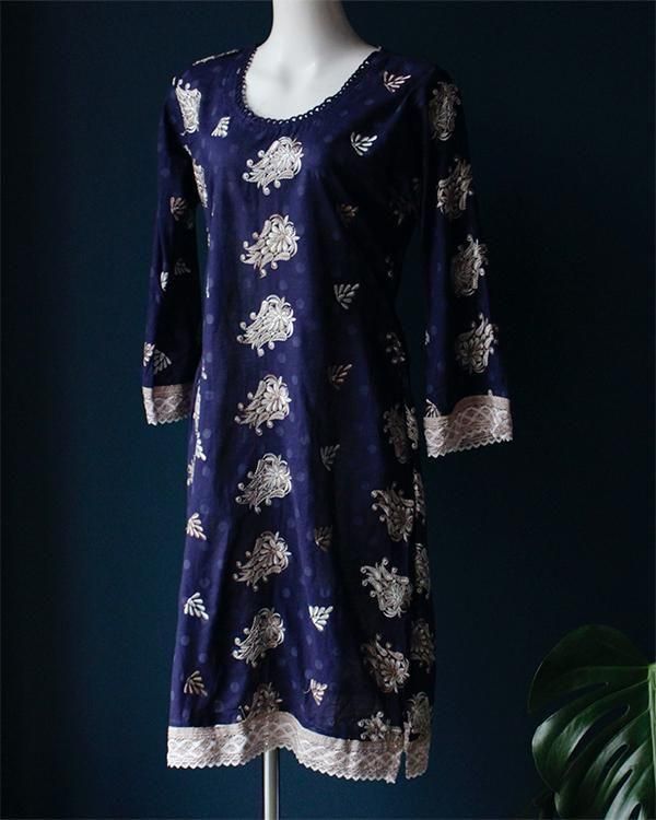 同色のドット柄に、上品な刺繍が施されたワンピース。