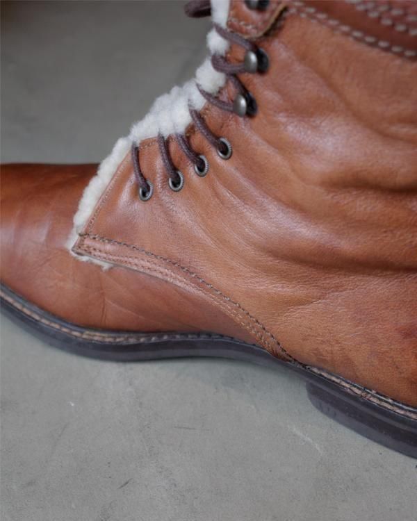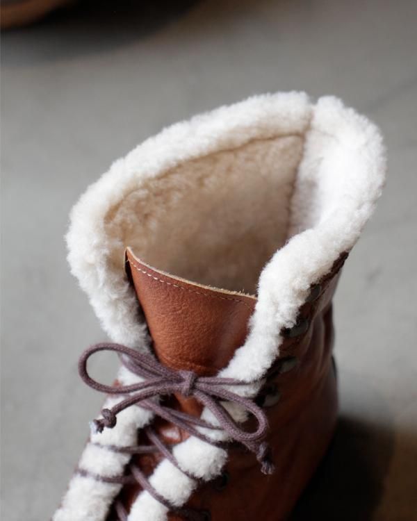 イタリア製ボア編み上げブーツ。柔らかく、ボアがとても暖かい、冬には最高の防寒具。