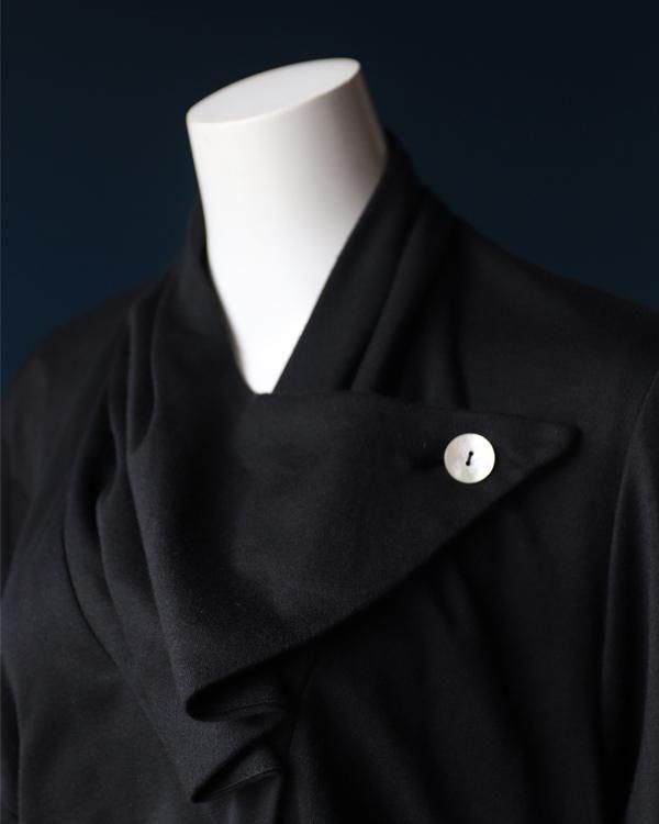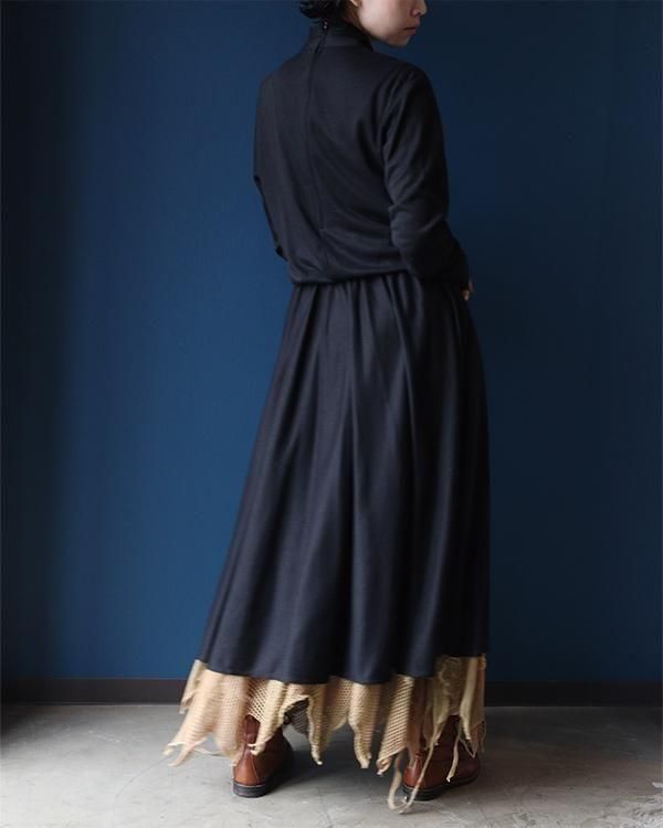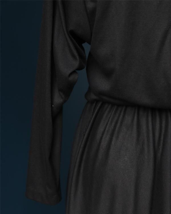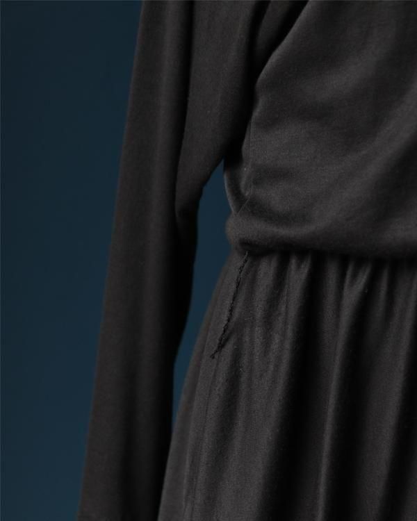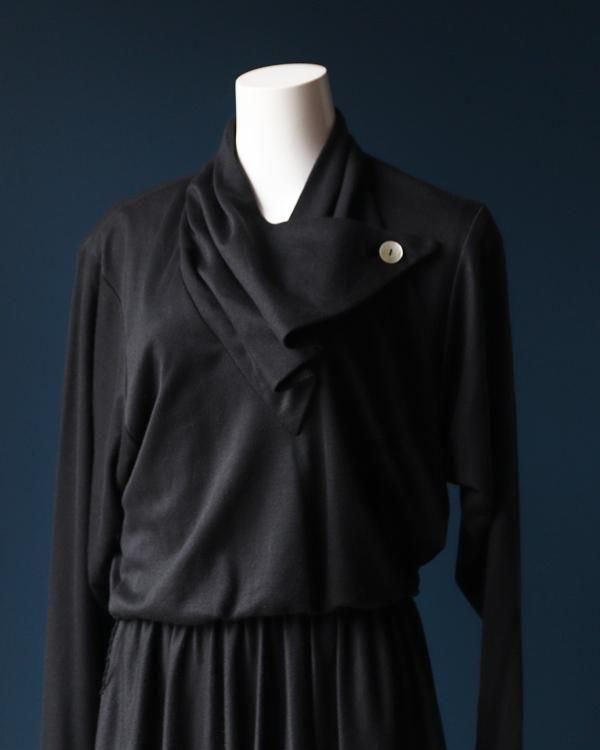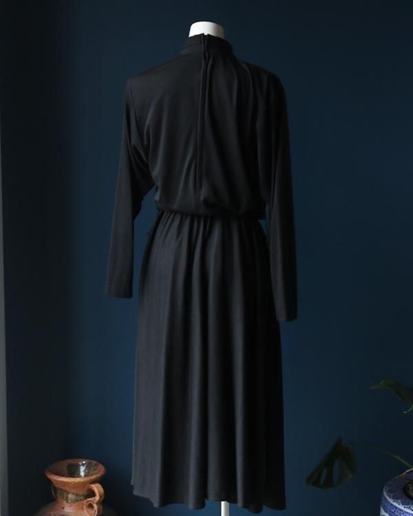 80年代のデッドストックソフトワンピース。襟は折り畳むようにデザインされた、柔らかいワンピース。ウェストはゴムなので14センチ伸びます。80年代のタロンジップ。一枚でさらっと着用できます。