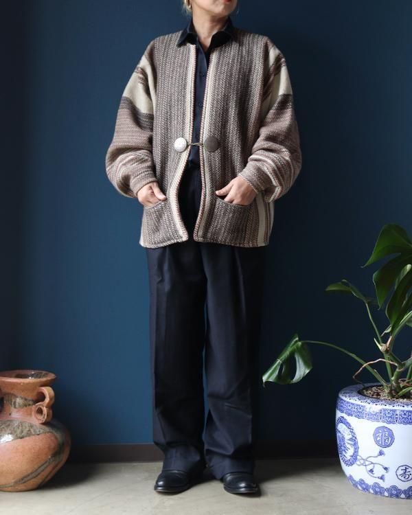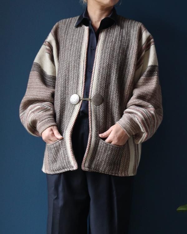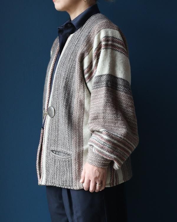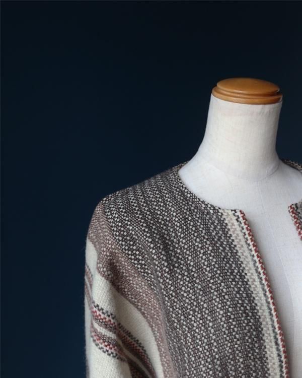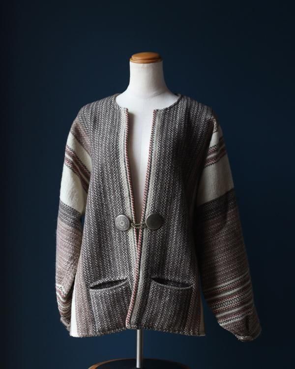 ノルウェイ製のウール100%のメキシコ風ジャケット。織の糸の色も味のあるウールの羽織。
