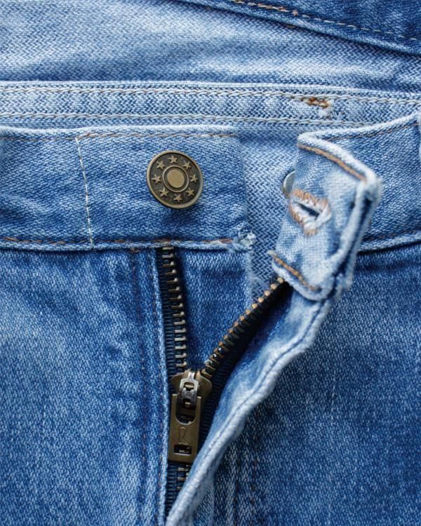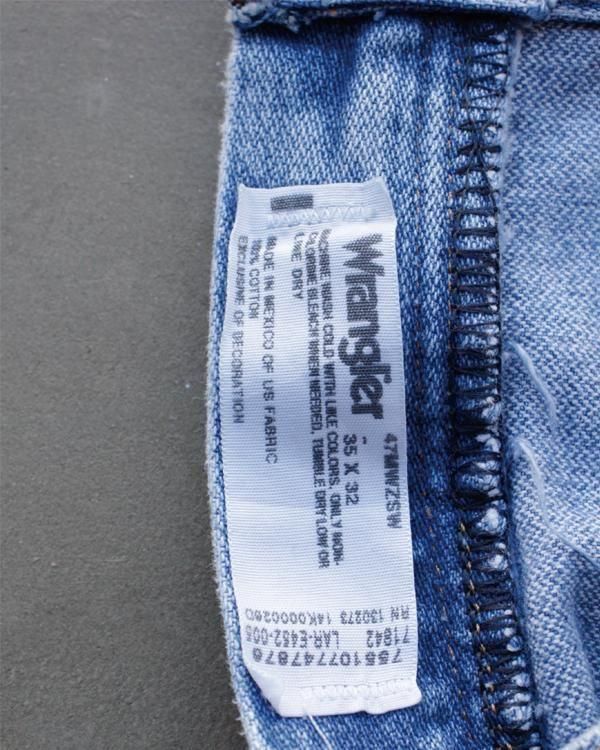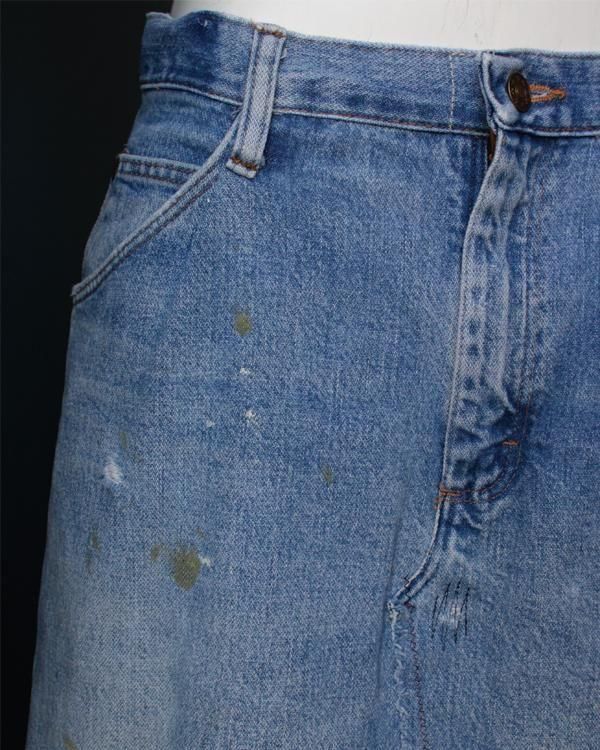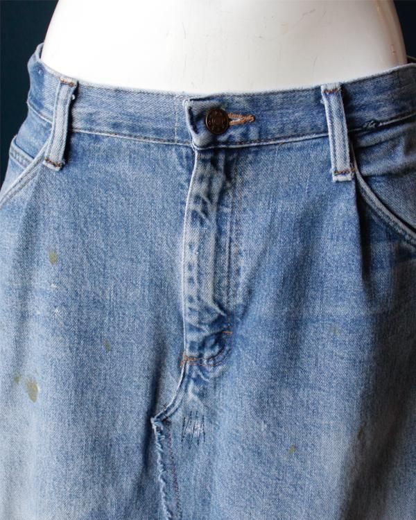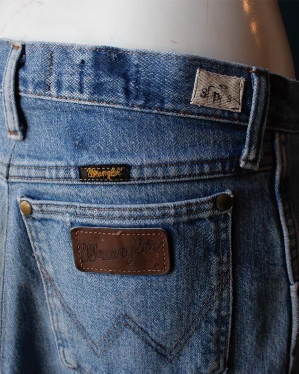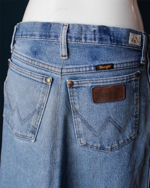 ベルトループ有り。ミドルウォッシュのラングラーのデニムでリメイクしています。