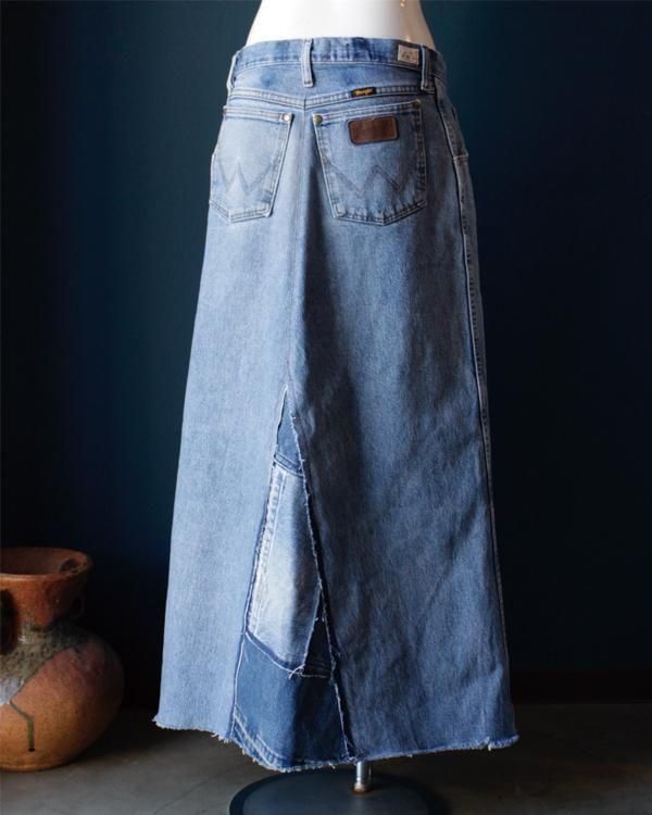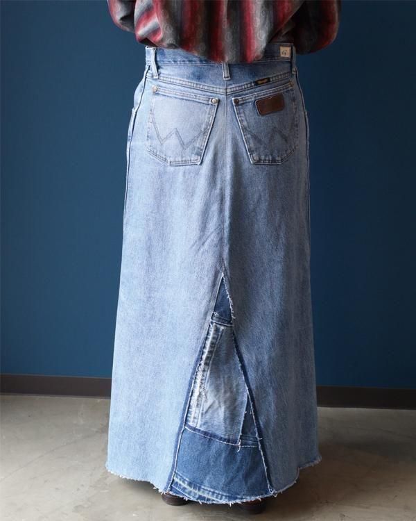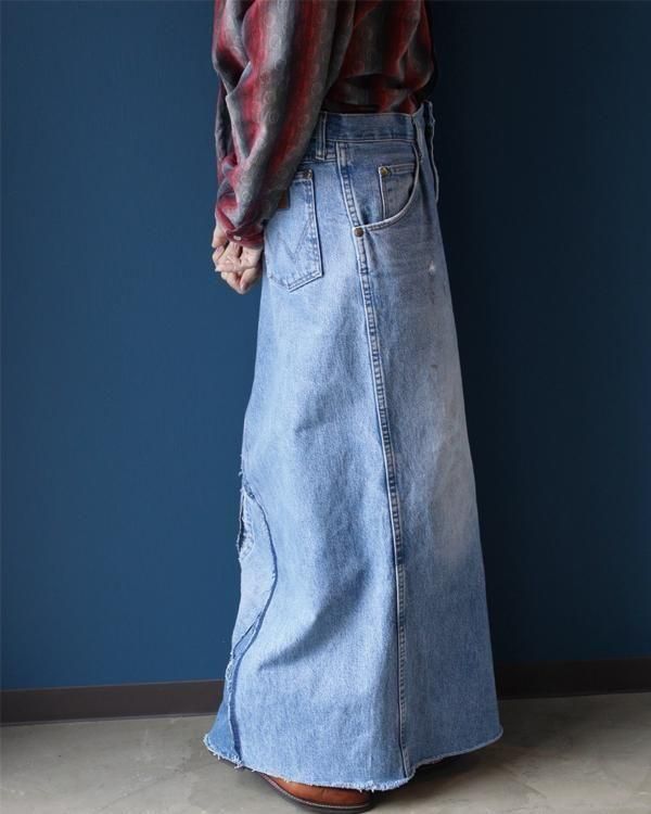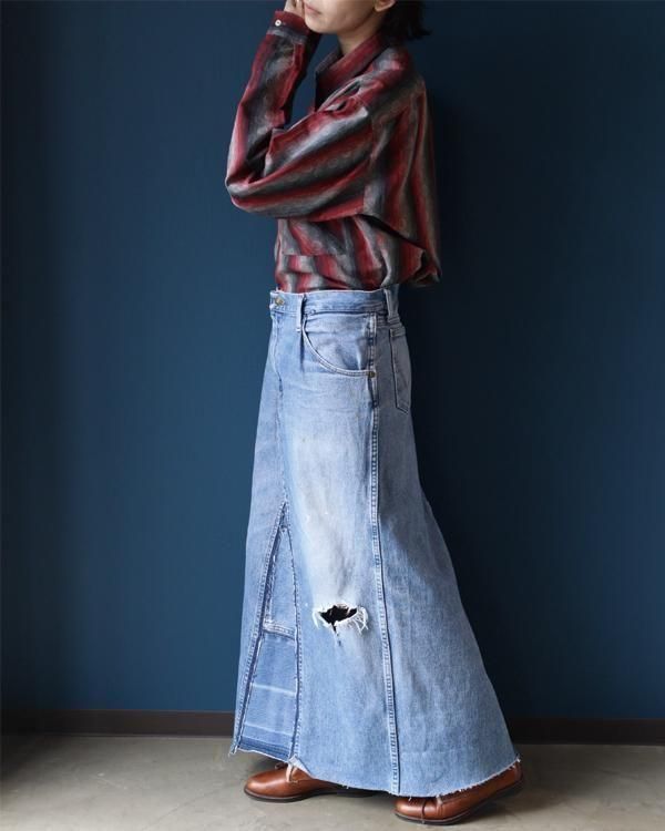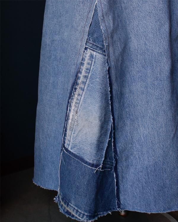 sheepsリメイクのスリットなしのスーパーロングデニムスカート