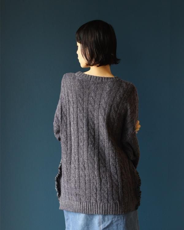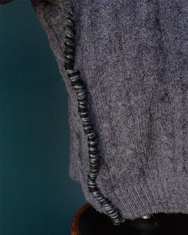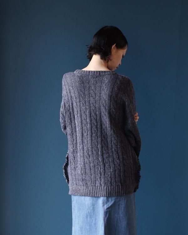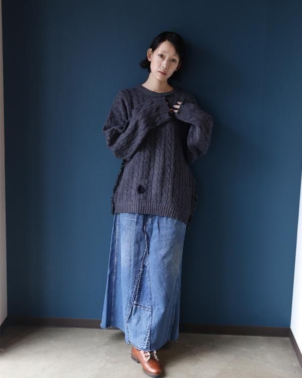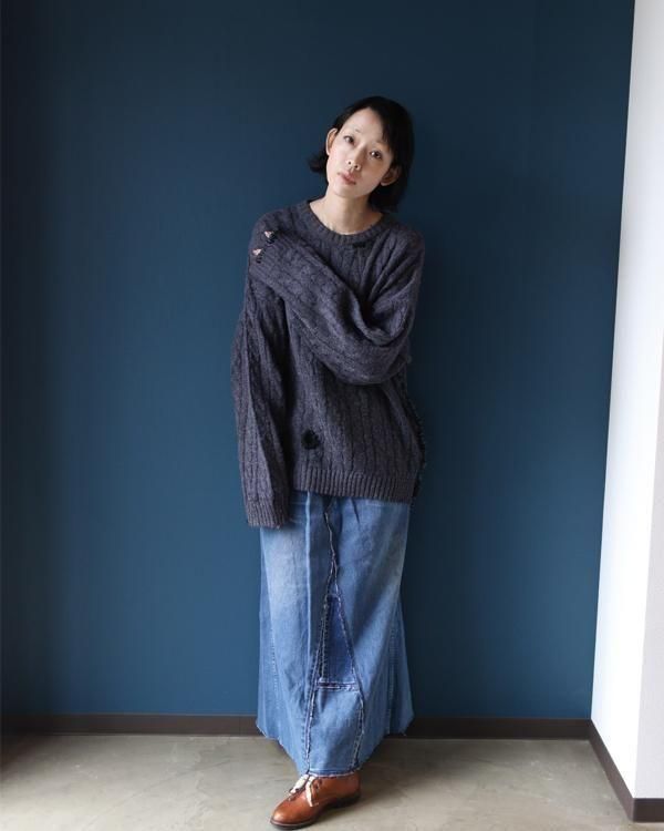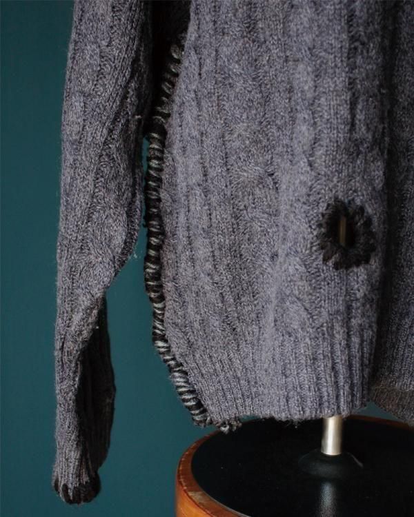 Sheepsリメイクのニット。脇とフロント、袖口に刺繍が施されています。
