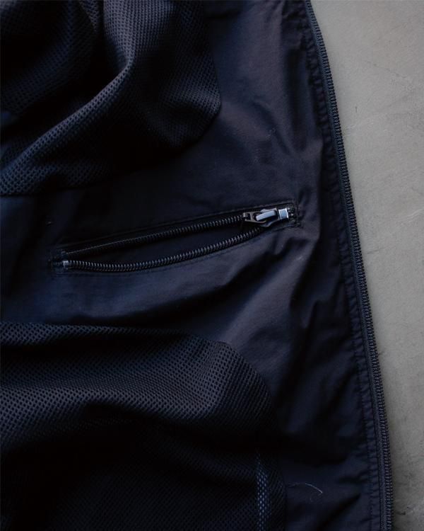 生地感はマットなナイロンなので、トラッドな感じで着用できます。胸のエンブレム刺繍は白です。