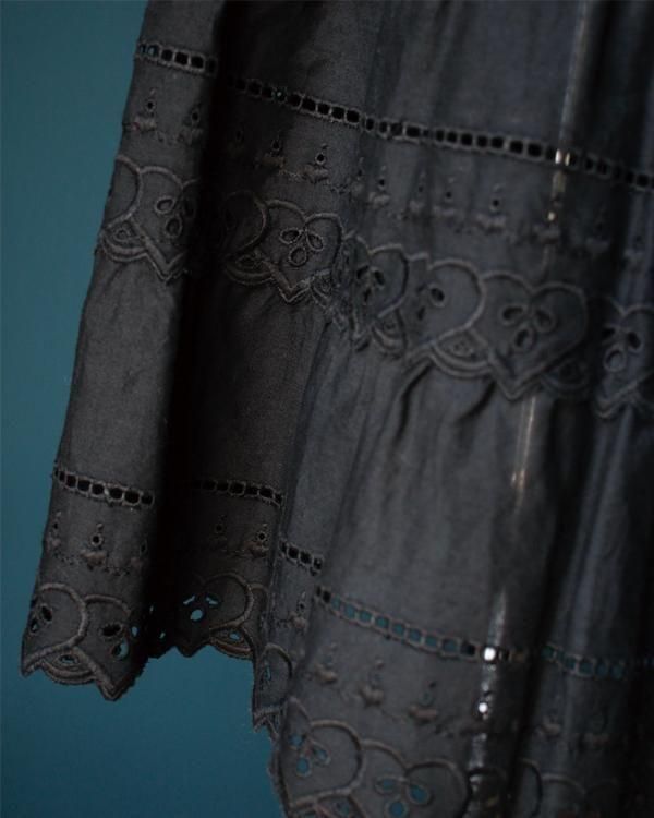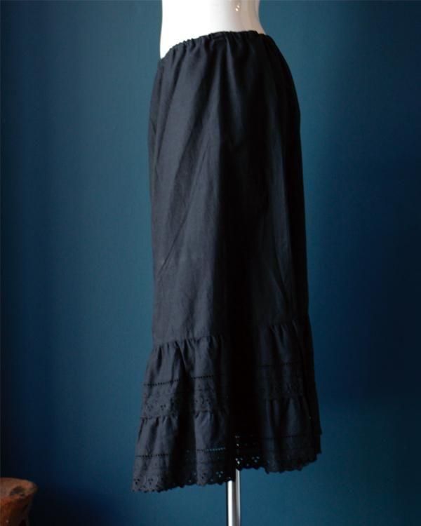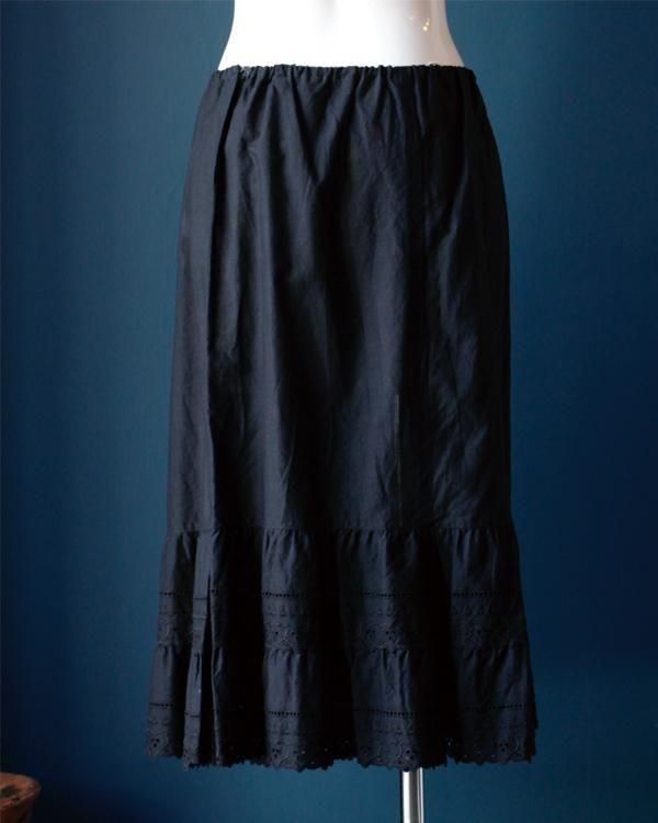 2段のフレアスカートに、刺繍が魅力的です。レイヤードスタイルも楽しめる一枚。