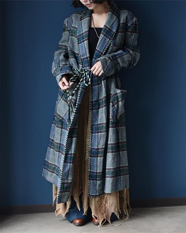 イギリス製、チェック柄が魅力的なスモーキングガウン。