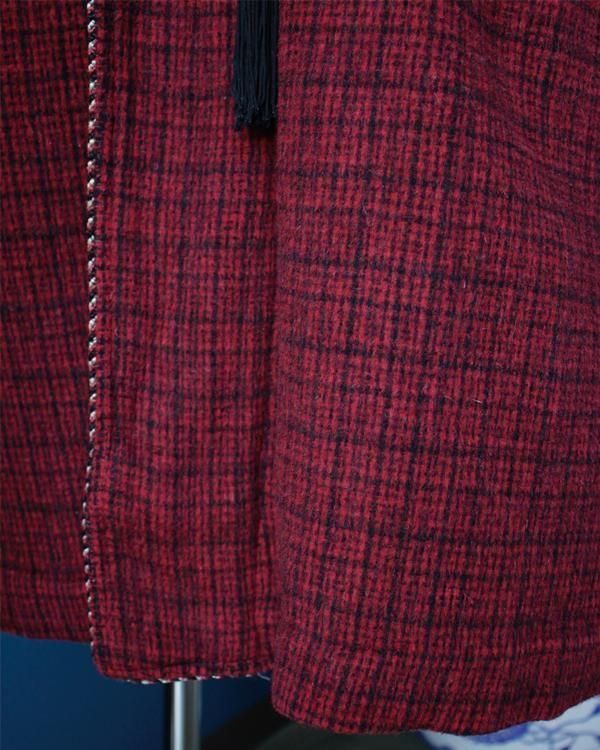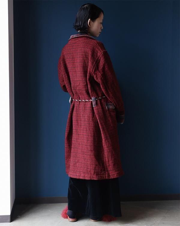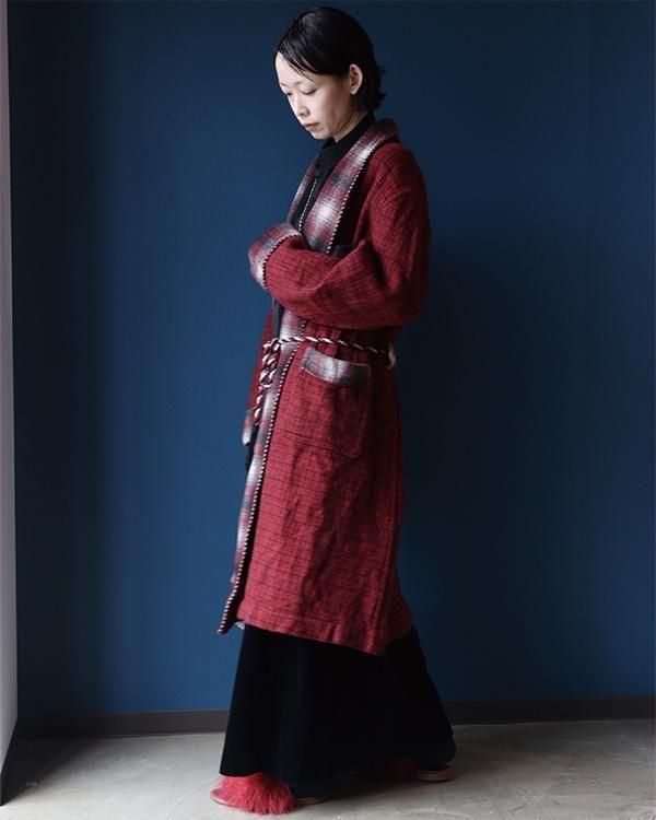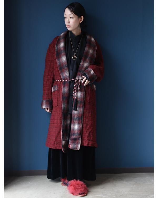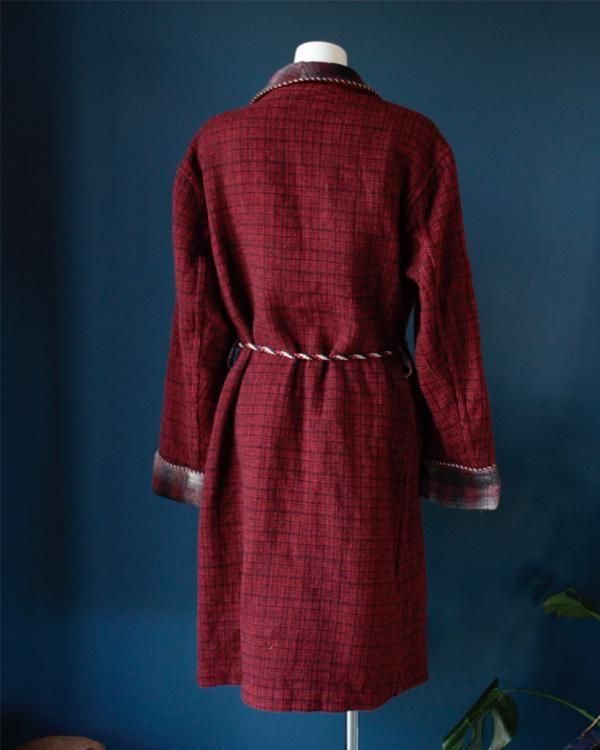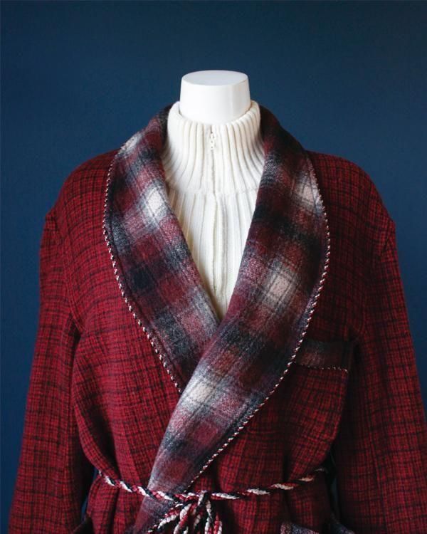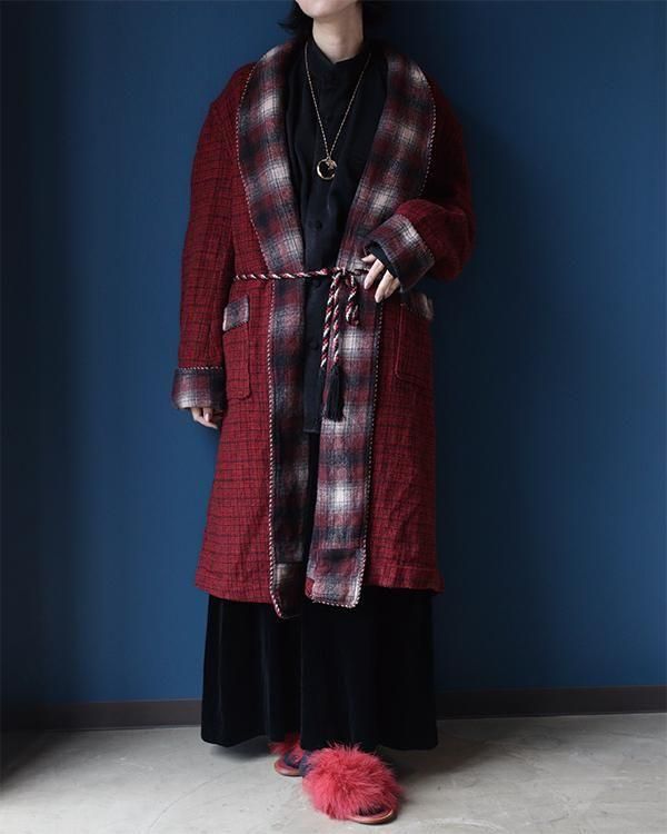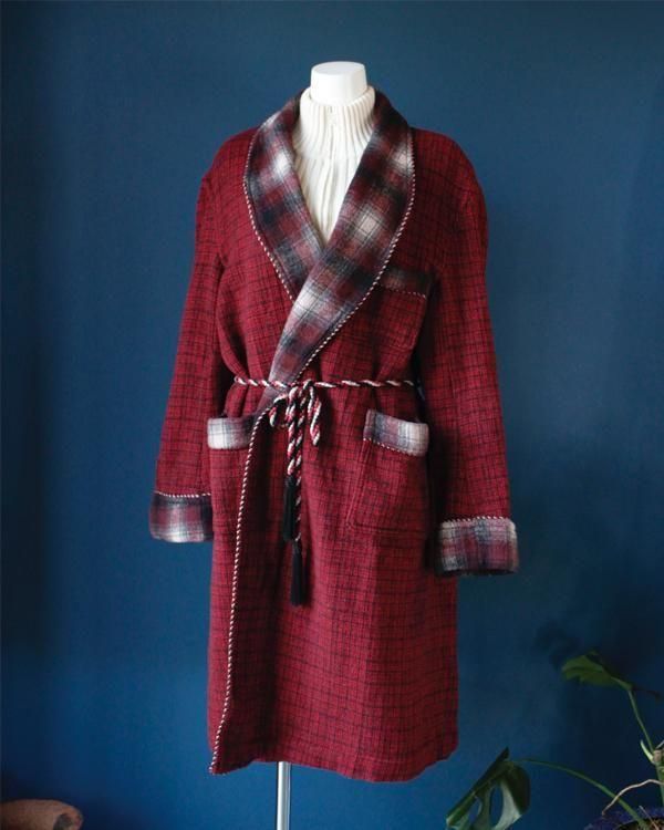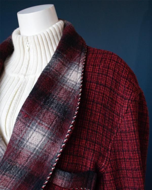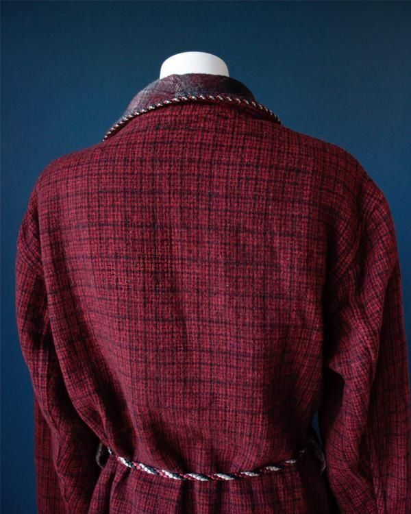 イギリス製、赤と黒の細かいプレイドチェック柄が魅力的なスモーキングガウン。
