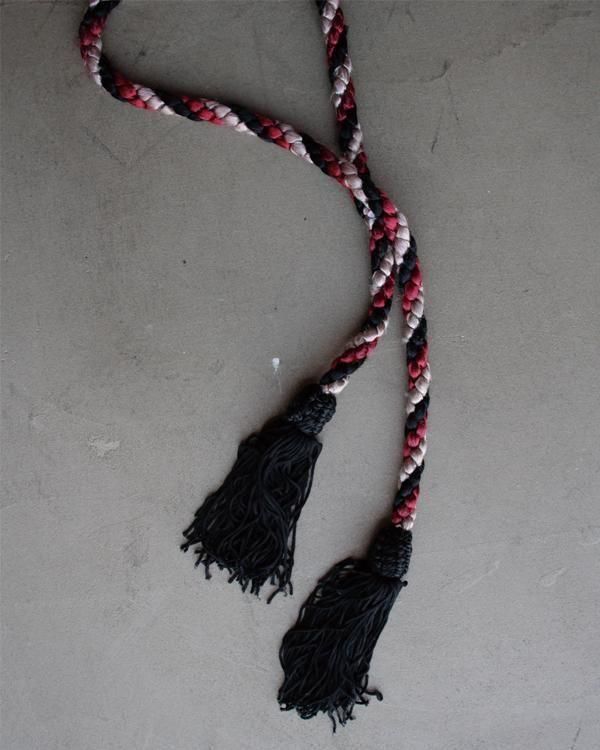 ウエストにベルトループ、紐がついており、絞って調整できます。