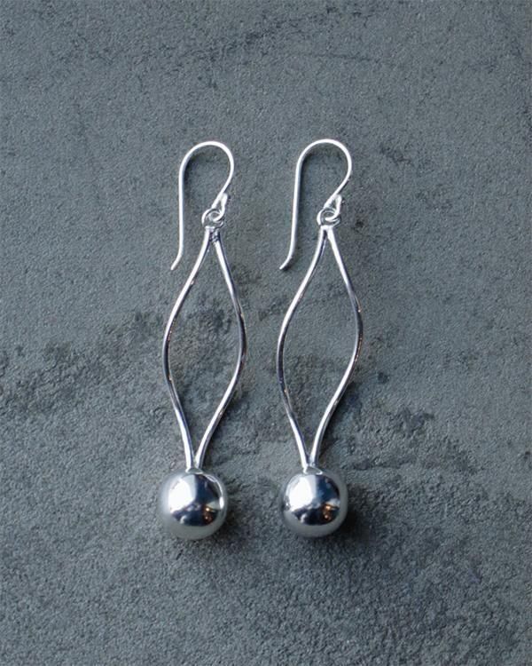 オープンワークデザインのシルバーピアス。艶のある質感が上品な輝きを放つ。