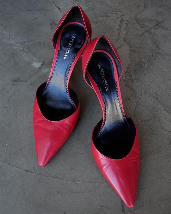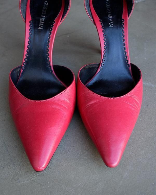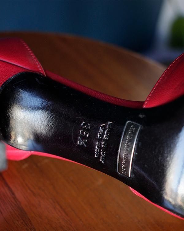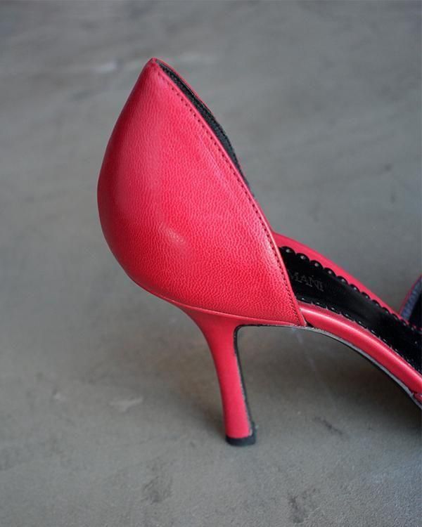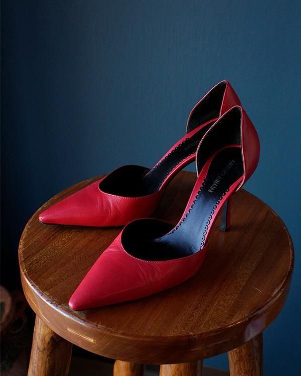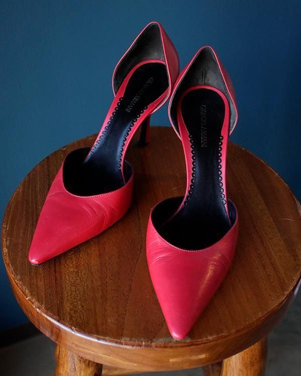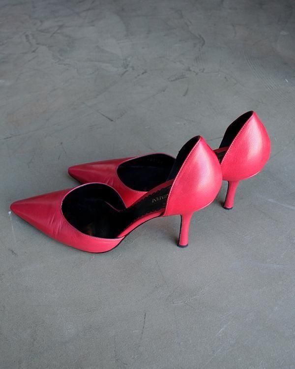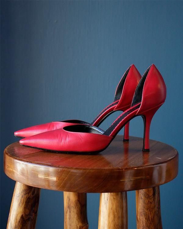 濃いピンクの魅力的なヒールパンプス。スタイルを綺麗に魅せてくれます。
