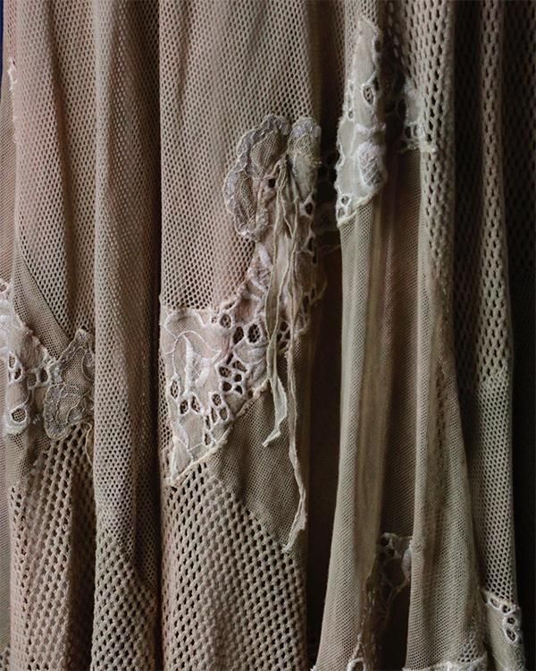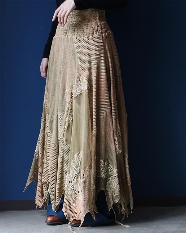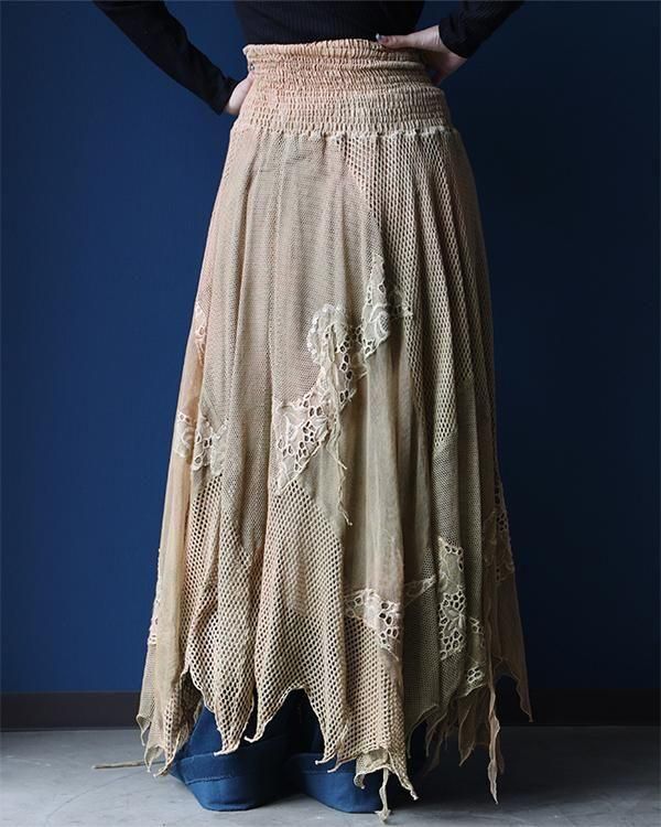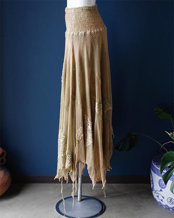 イタリア製、メッシュ生地やフリンジが個性的なスカート。