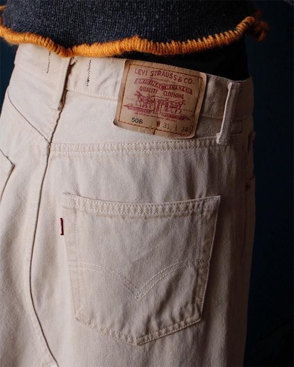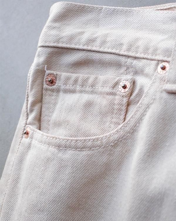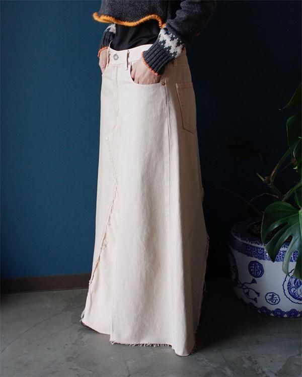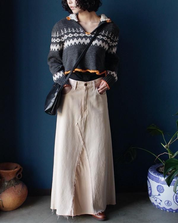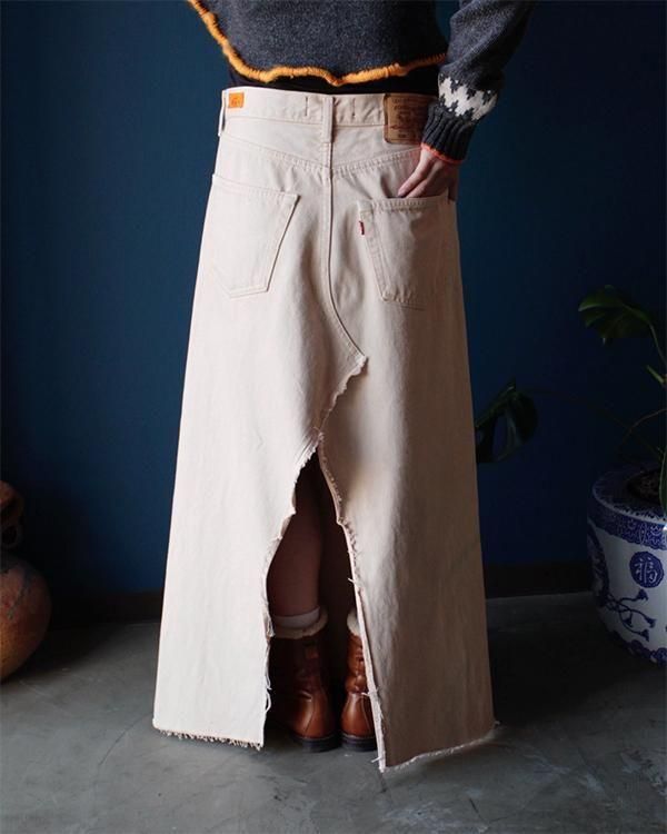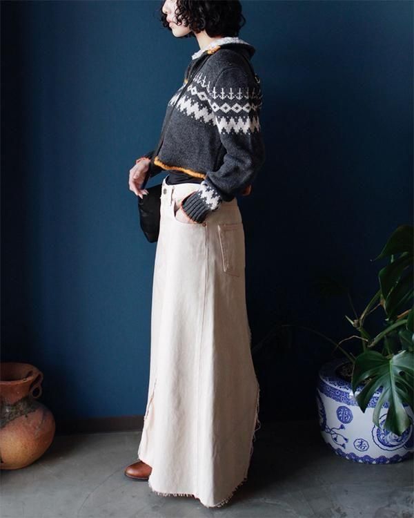 アイボリーのデニムのほつれ感がたまらない一枚。