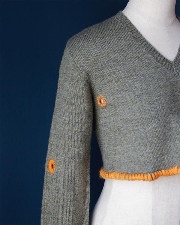 Sheeps Remake / embroidery cropped knit(GR)