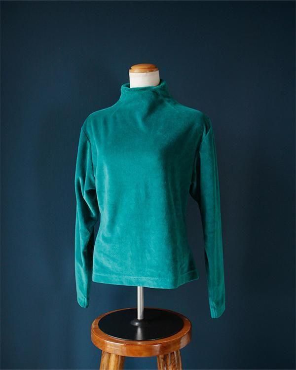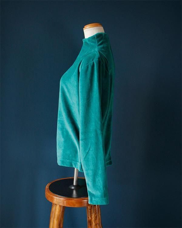 光沢感のある生地が魅力的なベルベットハイネックトップス。