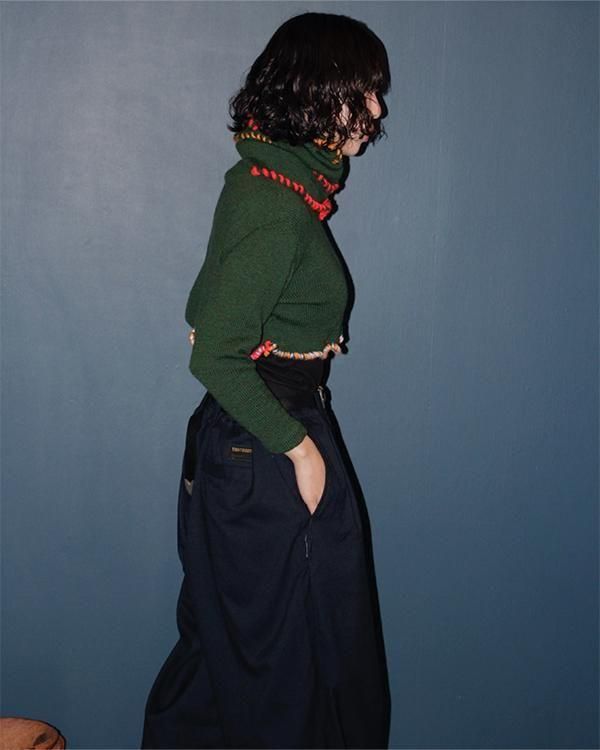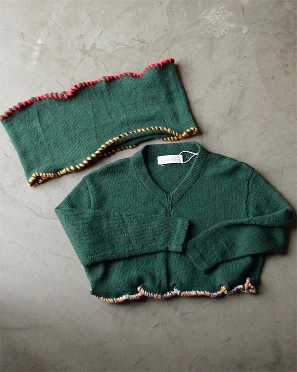 Sheeps Remake / embroidery cropped knit W Neck warmer(Green)