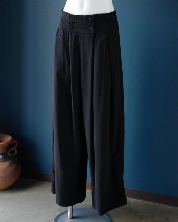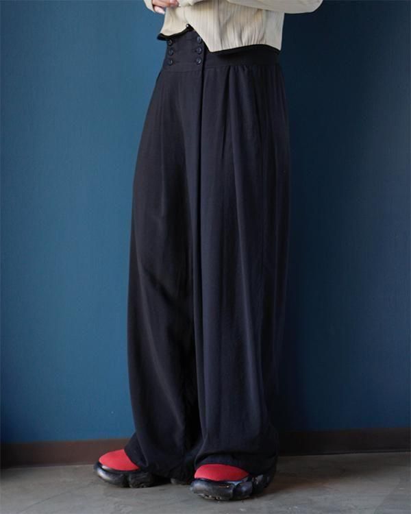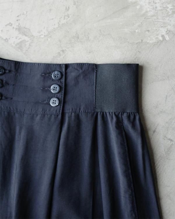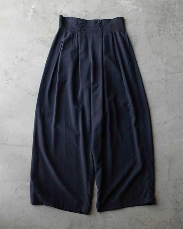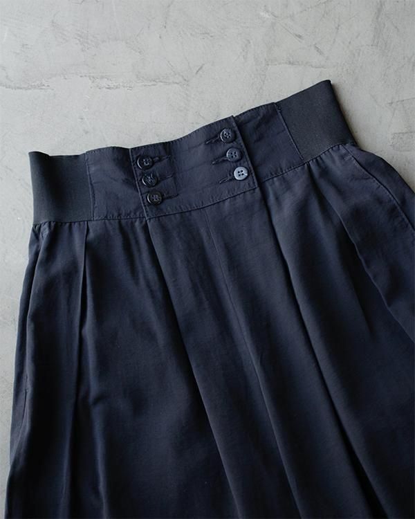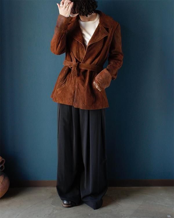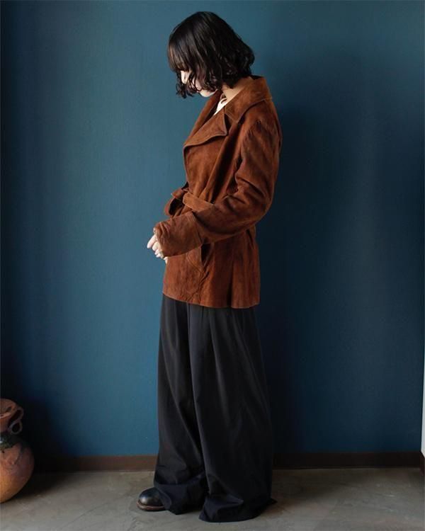 ワイドなシルエットにフロントのタックが、上品かつクラシックな一枚。