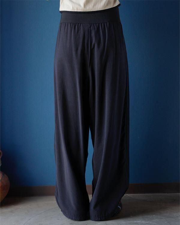 ウエストはゴム。両ポケットついております。薄手で柔らかな生地が履き心地の良い一枚。