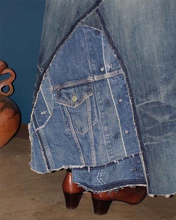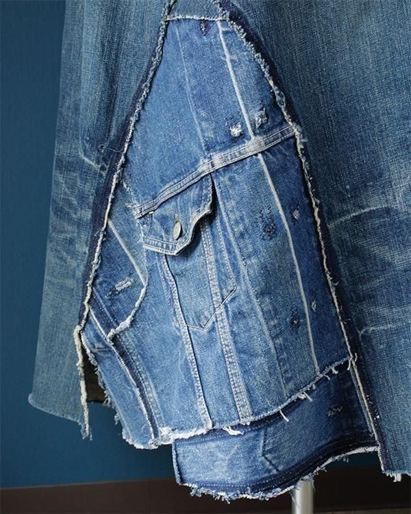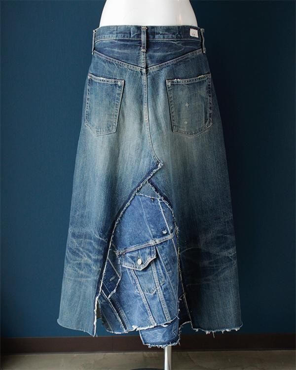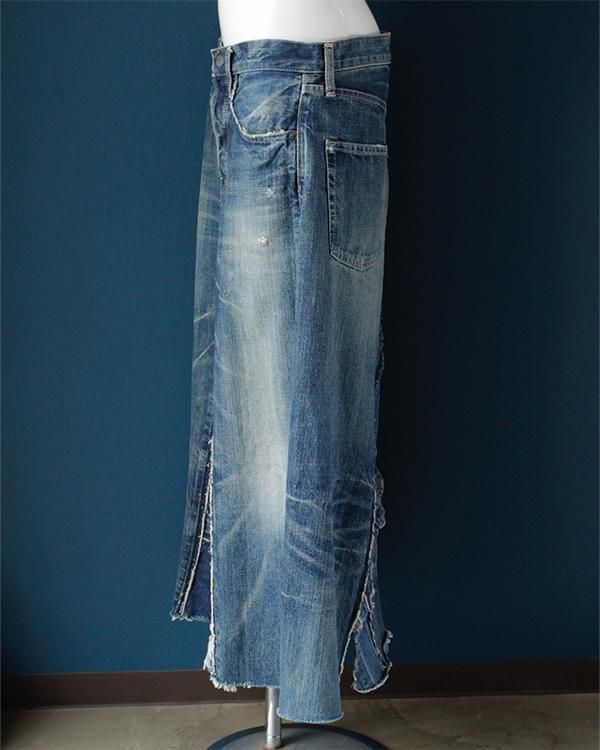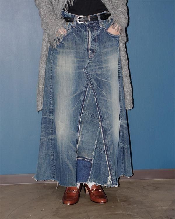 Sheepsリメイクのヴィンテージデニムロングスカート。