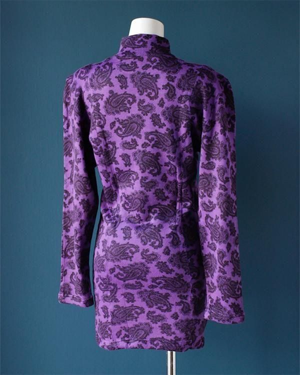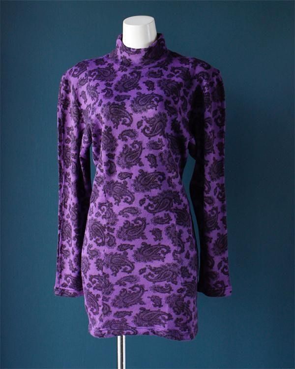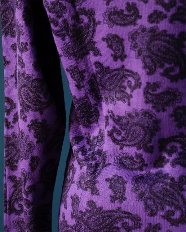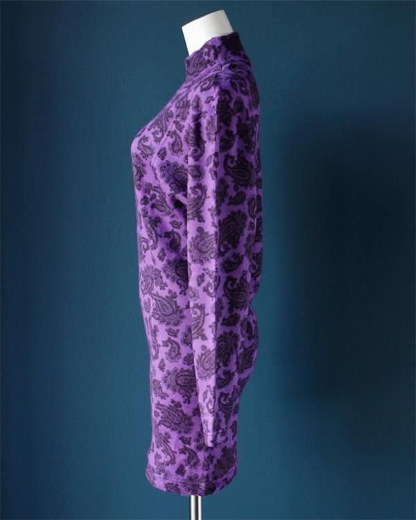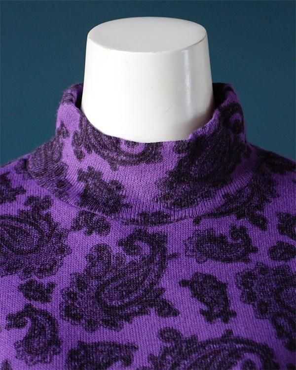 薄手のペイズリー柄ボトルネックニットワンピース。