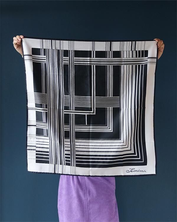 白黒の直線美の模様です。ヘッドアクセで70年代風にもアレンジできます。