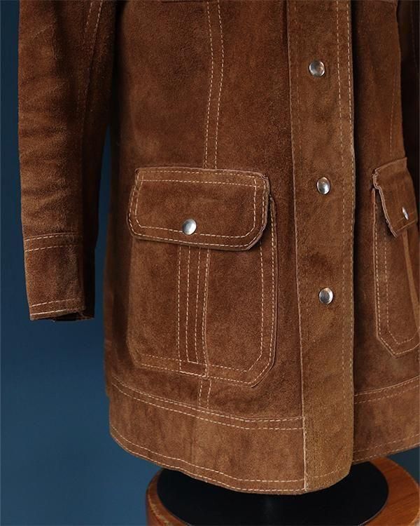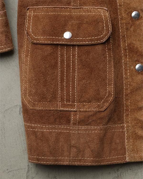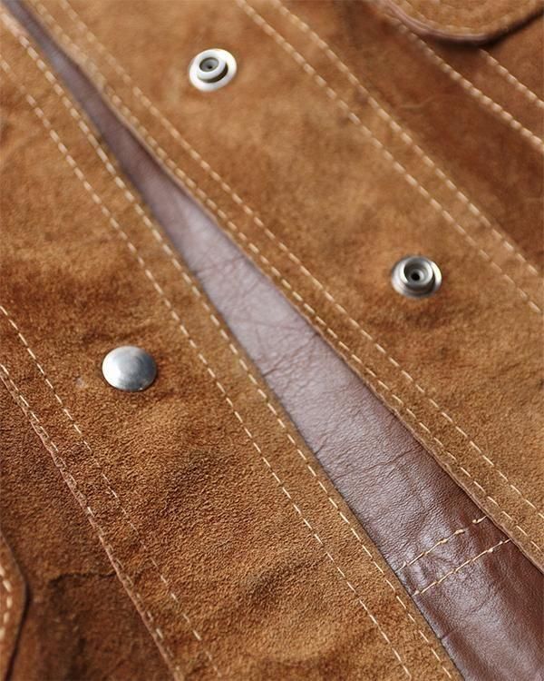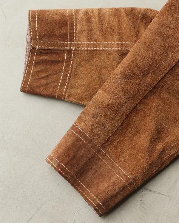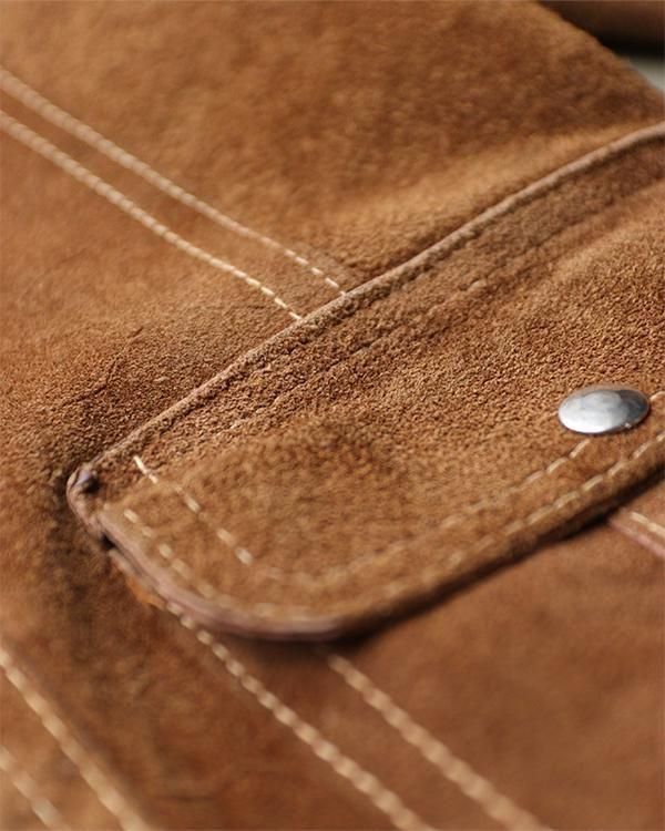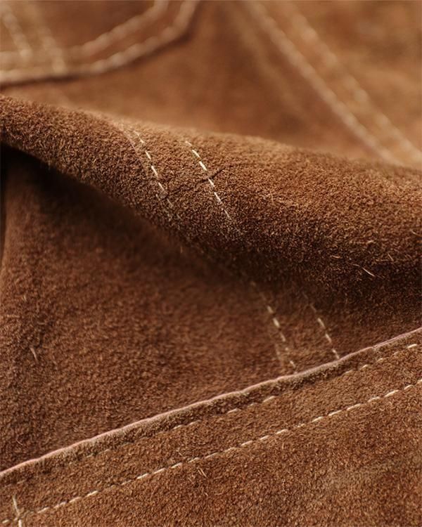 表は柔らかなスエード生地、裏返すと上質なレザー生地として着用できるリバーシブル仕様。